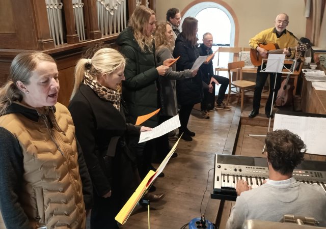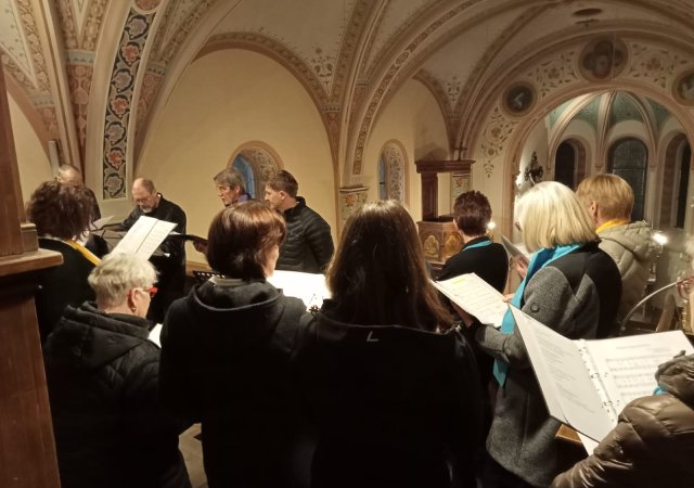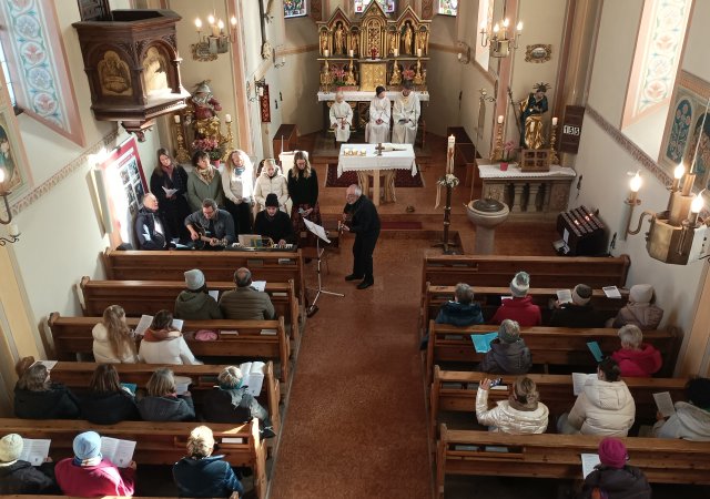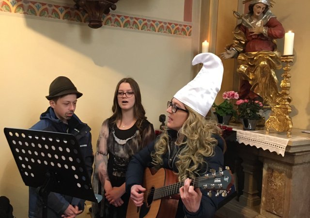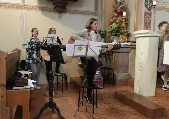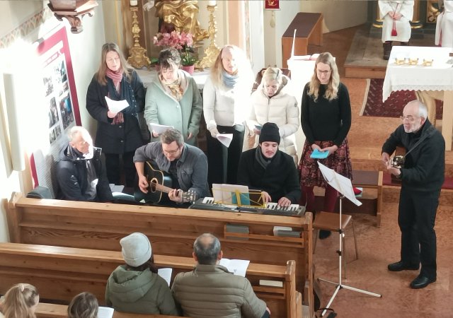 Nach einigen verschobenen Auftrittsterminen ist es nun gelungen, dass die Gruppe Sacro Song unter der Leitung von Gustl Schoberleitner einen Gottesdienst mit WG-Leiterin Manuela Gaßner musikalisch umrahmen konnte. Ein anspruchsvolles Programm mit "neuen" geistlichen Liedern aus den letzten fünf Jahrzehnten wurde vorbereitet und die Freude bei den Sängerinnen Michaela Muxel, Sigrid Petschko, Sabine Klepsch, Karin Schwabegger sowie Simone Dankl war spürbar. Auf ihren Instrumenten bereicherten Alexander Marath, Joe Hollaus und Gustl Schoberleitner die Lieder und die gute Stimmung erfüllte unsere Pfarrkirche und berührte die Gottesdienst-Besucherinnen. Ein großes Danke an die musikalische Gruppe, vor allem an Gustl Schoberleitner für seinen unermüdlichen Einsatz. Eine Fortsetzung ist "erwünscht".