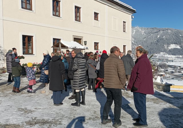 Die Atmosphäre beim Pfarr-Advent am 26. und 27. November 2022 am Kirchbichl war überwältigend. Zahlreiche Stände sowie Aussteller boten regionale Produkte sowie Kunsthandwerk an. Der kulinarische Reigen spannte sich vom Bosna über Gulaschsuppe, Maroni, Punsch, Glühwein, Lumbumba bis hin zu Kaffee und Kuchen. Beim Kinderprogramm wurden Teelicht-Halter gebastelt. Das Hirtenspiel der Volksschulkinder Piesendorf fand in der Pfarrkirche großen Anklang, das Konzert der Sängerinnen rund um Martin Knoflach hat die BesucherInnen in eine vorweihnachtliche Stimmung versetzt. Gegen den Abend ließen die Weisenbläserinnen noch wunderbare adventliche Stücke erklingen und die Adventkranzweihe bildete den feierlichen Abschluss des ersten Veranstaltungstages. Eine rundum gelungene Veranstaltung; der Reinerlös der Einnahmen kommt der Pfarr-Caritas Kaprun zugute. Herzlichen Dank ALLEN für die großzügigen Spenden! Möglich gemacht konnte dies alles nur durch die Zusammenarbeit, Mithilfe und durch den unermüdlichen Einsatz vieler HelferInnen, der Mitwirkenden und der ehrenamtlichen MitarbeiterInnen im Pfarrgemeinderat werden. Allen gebührt ein großes "Danke".