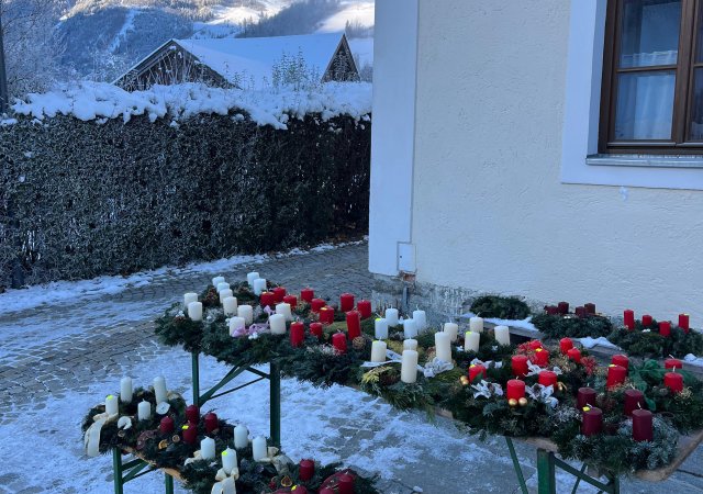 Unsere unermüdlich fleißigen Adventkranz-Binderinnen Katrin Rainer, Christine und Kathi Köhlbichler sowie Romana Nindl haben wahrlich "ganze Arbeit" geleistet. Ausgefertigt und geschmückt wurden die Kränze von Mariella Rheker. Euch gebührt ein großes "DANKE" für diesen wertvollen Dienst. Der Reinerlös aus dem Verkauf kommt der Pfarrcaritas Kaprun zugute.
