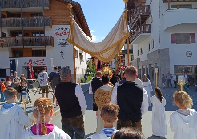 Im Mittelpunkt der Fronleichnamsprozession steht die Eucharistie. Begleitet von der Musikkapelle sowie von den zahlreichen Vereinen ist auch im heurigen Jahr wieder eine würdige Feier bei strahlendem Sonnenschein gelungen. Die Erstkommunionkinder haben mit Christa Lukatsch stimmungsvolle Lieder dargebracht. Die Prozession durch den Ort - vorbei an den schön geschmückten Altären, zur Imbachbrücke und zum Schluss die Station beim Seniorenhaus - war wiederum ein eindrucksvolles Zeugnis dafür, dass es einen guten Zusammenhalt in Kaprun gibt. Pfarrer Ananda bedankte sich bei allen, die dieses Fest vorbereitet haben und mitgestaltet haben.