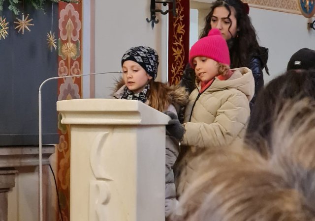 Zwei Wochen vor der Erstkommunion haben wieder Kinder aus den Tischmütter-Gruppen am Sonntags-Gottesdienst mitgewirkt.