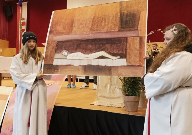 Unsere jugendlichen Pfarrgemeinderäte luden gemeinsam mit Huber Florian zum Kindergottesdienst am Karsamstag um 15 Uhr ein. Julian Rheker und Elisabeth Egger bereiteten die Leidensgeschichte von Jesus in kindgerechter Form vor. "Gottes Liebe ist so wunderbar", das war für alle spürbar und als Erinnerung an diese gemeinsame Feier erhielten alle BesucherInnen einen Smiley-Button, ein Symbol für Freude.