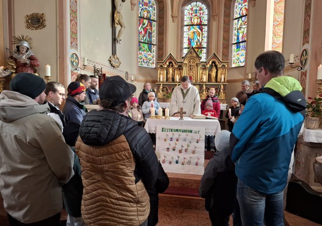 19 Kinder unserer Volksschule hatten im Sonntags-Gottesdienst die Gelegenheit, sich vorzustellen. Gemeinsam bereiten sie sich nun auf das große Fest der Erstkommunion, das am 12.Juni, stattfindet, vor. Unsere Religionslehrerin, Elisabeth Fuetsch, hat es verstanden, die Kinder mit kindgerechtem Evangelium sowie schwungvollen Liedern zu begeistern. Christa Lukatsch bereicherte den Gottesdienst mit musikalischer Umrahmung. Dass Jesus ein großes Herz hat - für alle - diese Botschaft war spürbar und so wünschen wir den Kindern und ihren Familien auf diesem Weg der Vorbereitung alles Gute, Gottes Segen und wir schließen die Kinder begleitend in gute Gedanken ein.