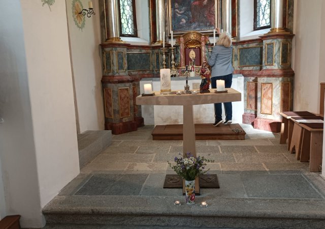 "Die Gottesmutter Maria als Vorbild" - in Fragen der Erziehung, in verschiedenen Lebenssituationen sowie im Umgang mit Jugendlichen - war das Motto der Maiandacht, die von Martha Arnold und Heidi Steinbauer vorbereitet wurde. Musikalisch umrahmten die Feier Birgit Arnold, Klaus Steinbauer und Wolfgang Hartinger.